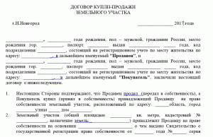 - Предмет сделки. В качестве него выступает земельный надел. Укажите всю известную о нем информацию: полное описание, адрес местонахождения, номер, под которым он записан в государственном кадастровом реестре, вид разрешенного землепользования, а в случае, если на территории имеются здания – все их характеристики;