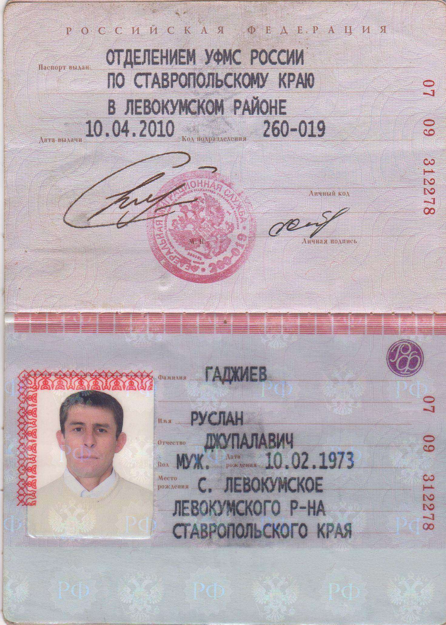 Образец паспорта гражданина РФ
